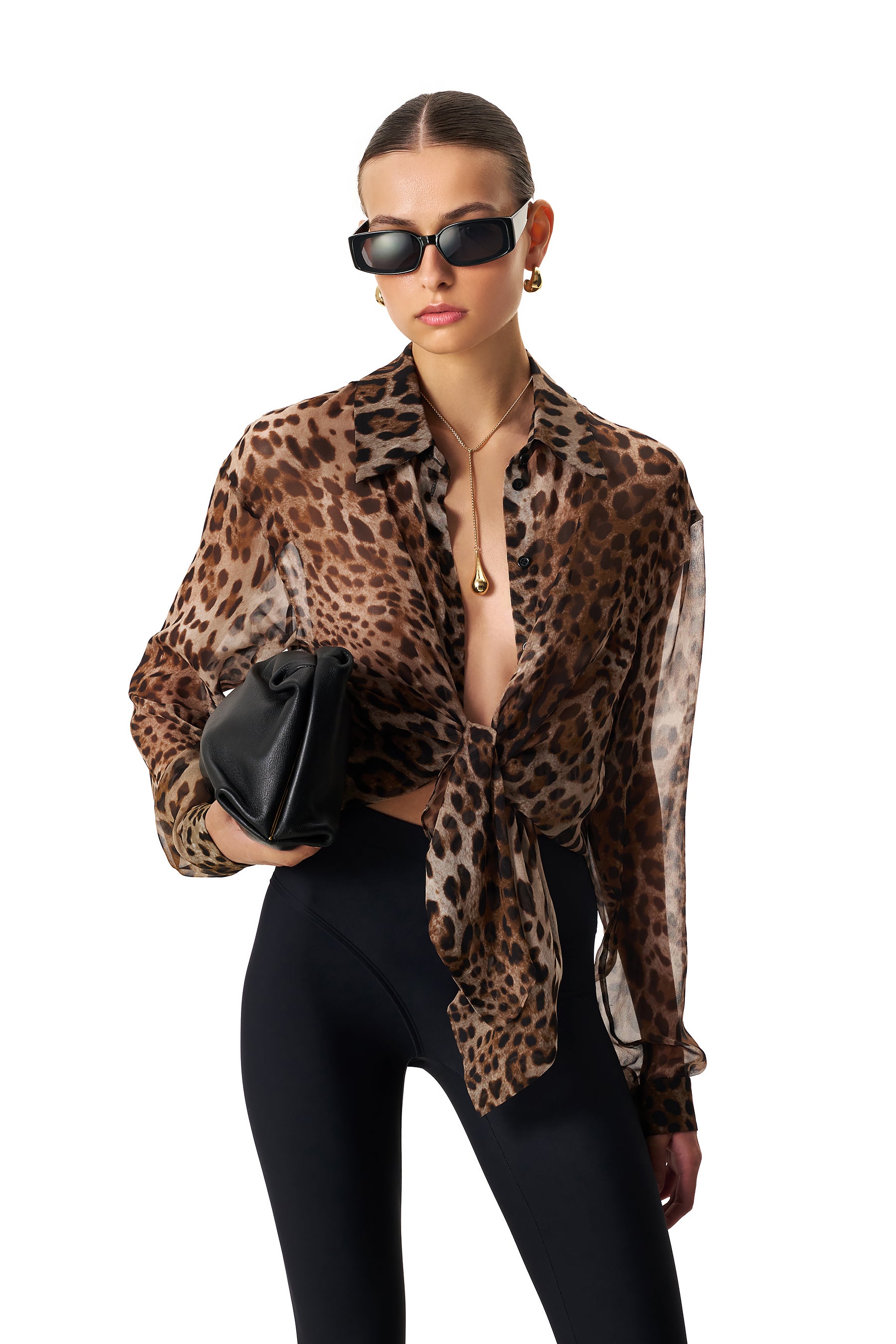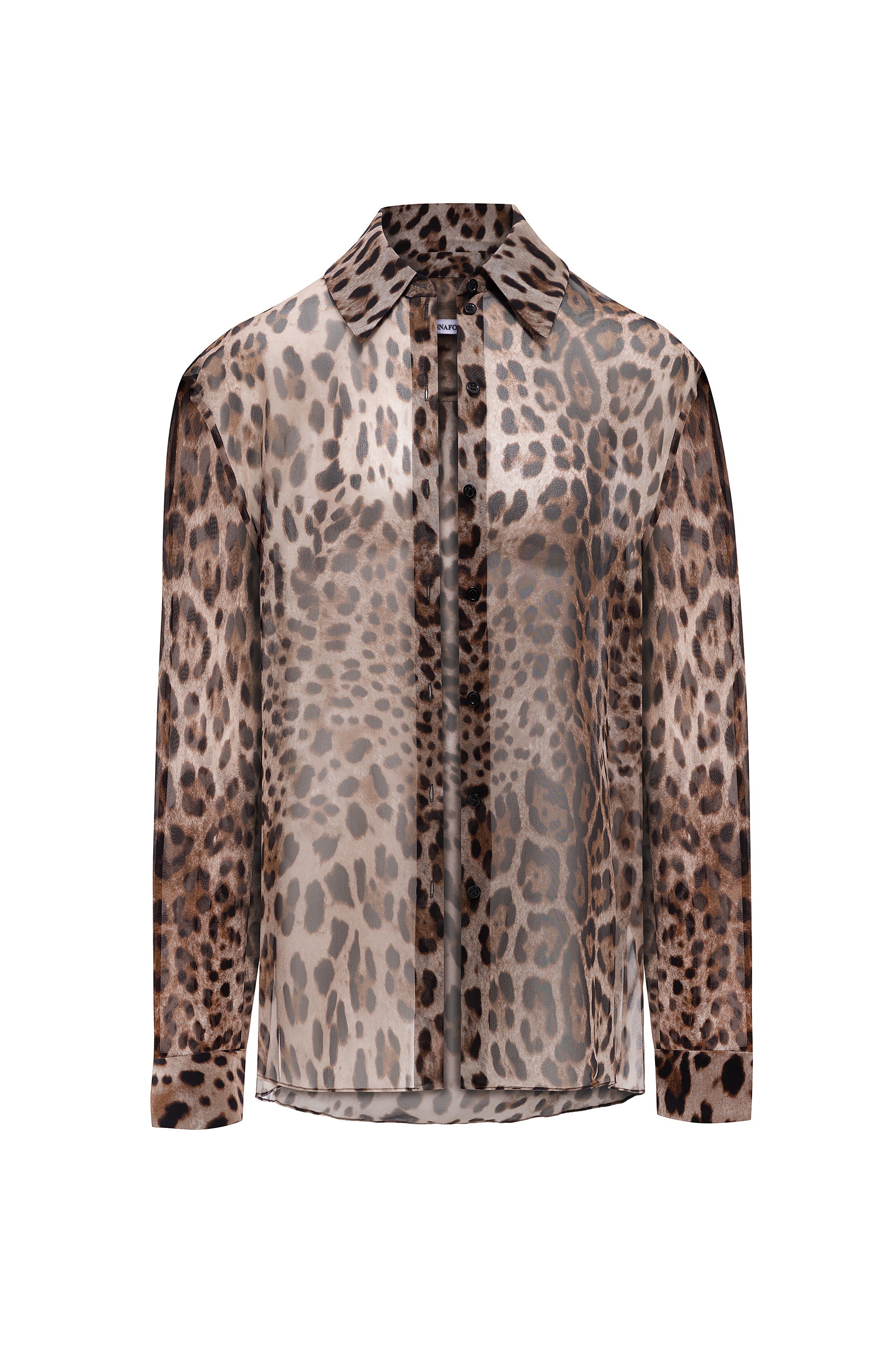 The NYX LEOPARD CHIFFON BLOUSE embodies refined sensuality and effortless sophistication. Crafted from lightweight Italian silk chiffon, it drapes gracefully, creating subtle movement and an airy, semi-sheer effect. The classic collared neckline and clean buttoned front bring structure and balance to the expressive leopard print, resulting in a piece that feels both timeless and modern.Style it buttoned up for a polished, confident look, or slightly undone for relaxed elegance.