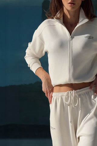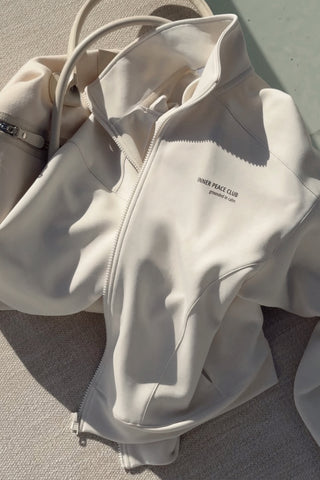 Wear it zipped up for a sleek look or open for effortless layering—perfectly paired with the CALME JOGGERS or styled on its own.