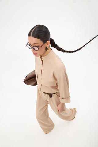 The AIRE BEIGE JUMPSUIT is a stylish and versatile option, perfect for warmer days. Made from lightweight and breathable fabric, it falls gracefully and can be adjusted to fit perfectly. Whether dressed casually or accessorized for a more elevated look, this jumpsuit exudes elegance and comfort.